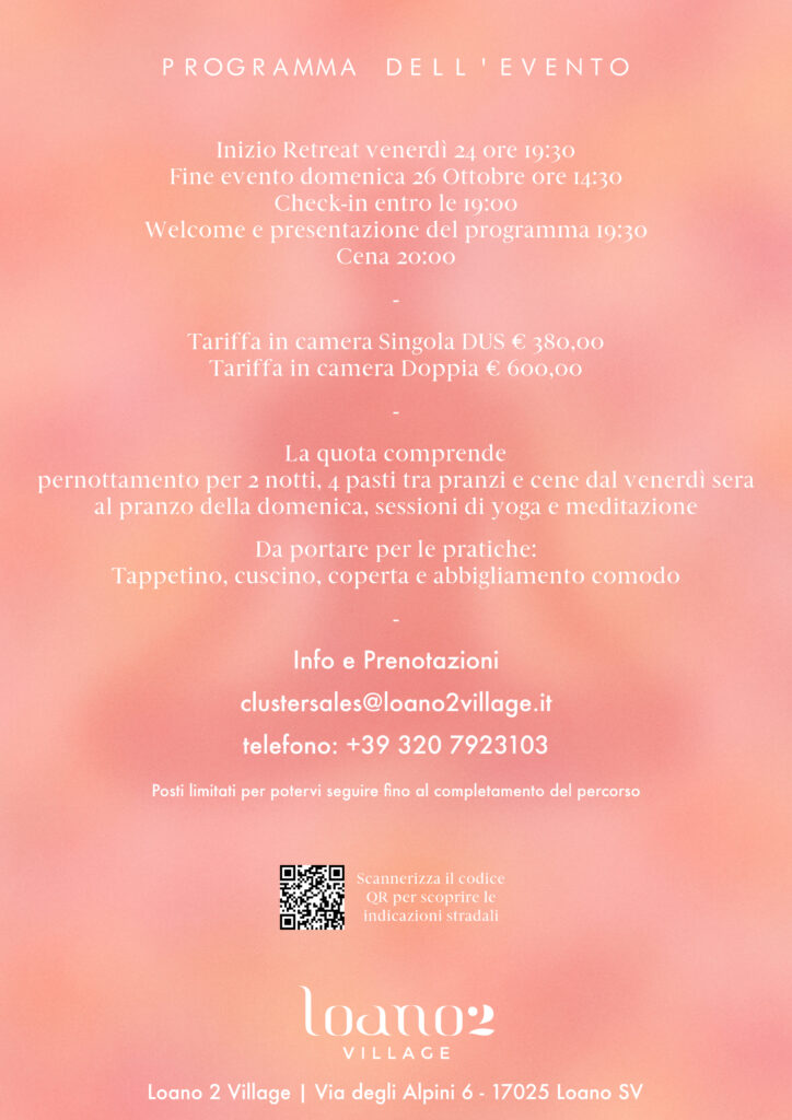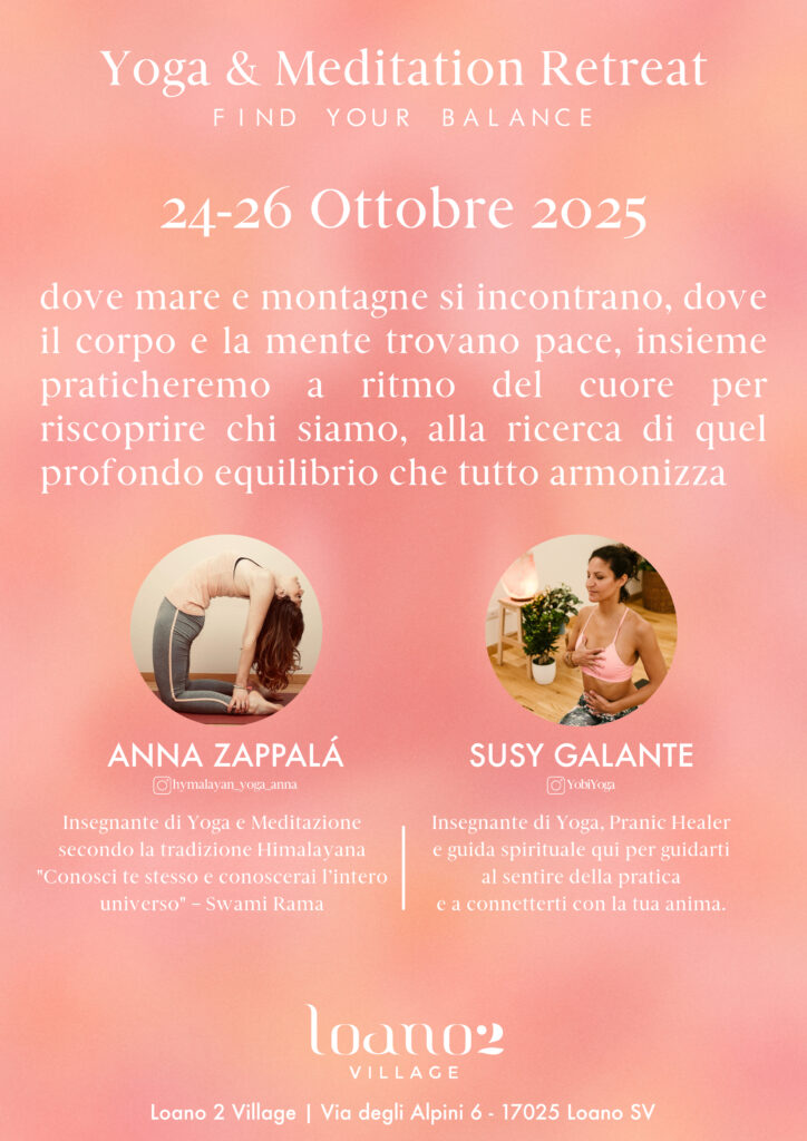 Il 24-26 Ottobre ti aspettiamo a Loano 2 Village per un ritiro di Yoga e Meditazione,